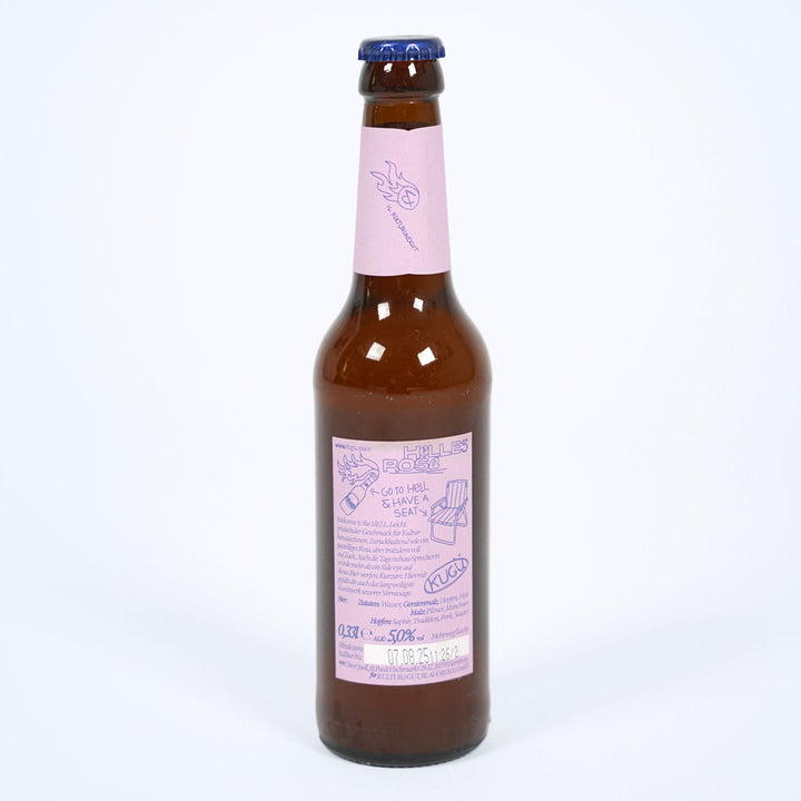 Das Bier hat einen leicht prickelnden Geschmack für Kulturbanaus:innen. Es ist zurückhaltend wie ein helles rosa aber trotzdem voll auf Zack.